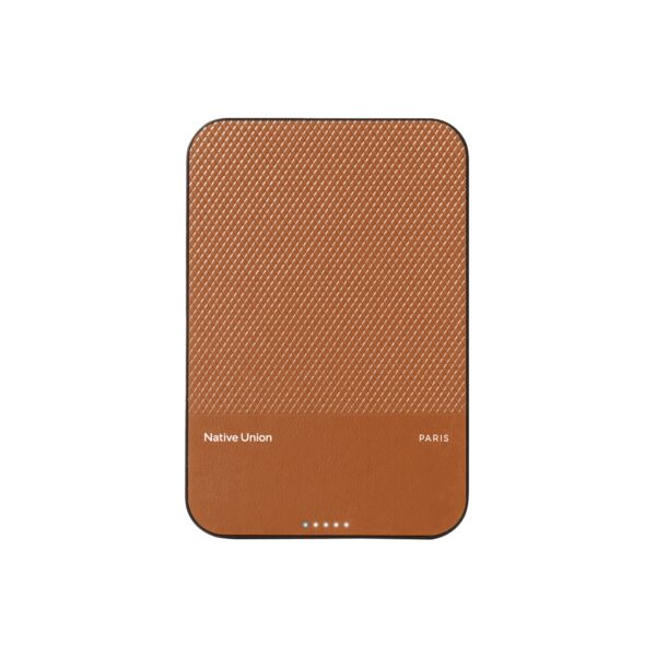 Recharging, reinvented. (Re)Classic Power Bank 5000mAh takes the convenience of on-the-go magnetic charging and brings unique touch. This lightweight power bank is less than 1cm thick, wrapped in animal-free leather, and finished with signature textured contrast for more refined portable power.