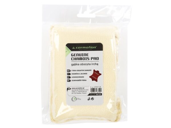 Dimensions: 5x10x15 cm The sponge is completely covered with natural chamois leather. It’s designed to clean fogged windows, mirrors and headlights. It leaves no streaks or scratches. It’s soft and pleasant to the touch. It’s characterized by a high absorption capacity. Reusable.