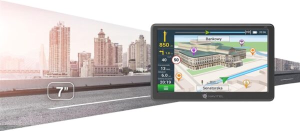 Prekės ženklas- Navitel. Modelis- E707 Magnetic. Plotis- 13.2 cm. Gylis- 8.9 cm. Aukštis- 1.75 cm. Svoris- 248 g. Spalva- Pilka. Montavimas- Tvirtinama prie priekinio stiklo. Žemėlapis- Baltarusija, Europa, Ukraina, Rytų Europa, Vakarų Europa, Centrinė Europa, Pietų Europa, Šiaurės Europa. Žemėlapių atnaujinimas- Neribotas žemėlapių atnaujinimas visą įrenginio veikimo laikotarpį. Ekrano įstrižainė- 7 in. Ekrano raiška taškais- 800 x 480. Liečiamas ekranas- Taip. Atminties talpa- 8 GB. Palaikomos atminties kortelės- Micro SD. Palaikomos kalbos- Lietuvių, Rusų, Anglų, Latvių. Valdymas balsu- Ne. Bluetooth sąsaja- Ne. Galinė kamera- Ne. Garantija- 24 mėn. Papildoma informacija- Žemėlapiai: 47 Europos šalys + pilni Rusijos, ukrainos, Baltarusijos, Kazachstano žemėlapiai. Greičio kamerų, greičio limitų informacija. Maršruto pasirinkimo funkcija: pėščiajam, dviratitinkui, motociklininkui, automobiliui. Meniu ir balso kalbų skaičius – 30. Eismo juostos asistentas. .