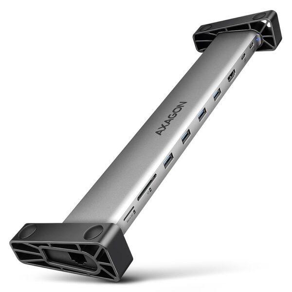 The multi-port USB-C 5Gbps AXAGON HMC-10HLS LONGER hub 9in1 expands your laptop, computer or phone with nine ports. You can easily and quickly connect a monitor, four USB devices, Gigabit Ethernet network and an SD card reader to your computer via the double-sided USB-C connector. You also get the possibility to supply laptop using Power Delivery technology at the same time. The port replicator will thus provide you with a simple and compact 9in1 docking station not only for Windows laptops but also for Apple laptops such as MacBook Air or MacBook Pro.