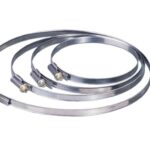 Skersmuo, mm: 43.Plotis, mm: 22 mm.Padengimas: Nerūdijantysis plienas.Papildoma informacija: Juostos storis – 1,2 mm; varžtas – M8.