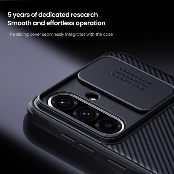 Nillkin CamShield PRO is a unique cover with sliding camera lens cover. In addition, compared to the classic CamShield, it is unique in that it consists of two materials. The back of the cover is made of strong and durable plastic, including the camera cover. The frame of the cover is made of softened TPU plastic, for the best protection of the edges and corners of the phone. Both materials are highly resistant to wear, but also to fingerprints and grease. Precise cut-outs for control elements and the necessary connectors ensure convenient operation of the phone. Properties: - TPU frame material - PC backside material - sliding cover to protect the camera lens - fits perfectly on the given type of phone - Softened frame for maximum protection