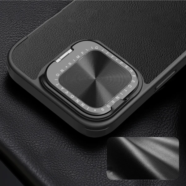 Nillkin Qin Prop Leather Case with Camera Cover and Stand for iPhone 16 – Black
