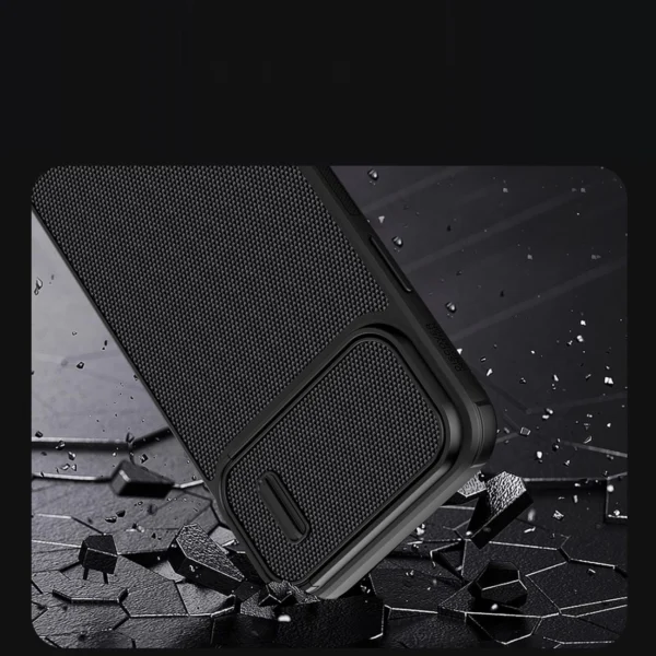 The Nillkin Textured Case is made of high-quality materials. The unusual back panel of the cover has a pleasant-to-touch nylon fiber coating. Not only does it provide an interesting finish and design, but it is also comfortable and prevents the device from slipping out of your hand. The phone placed in this case is well protected against mechanical damage.