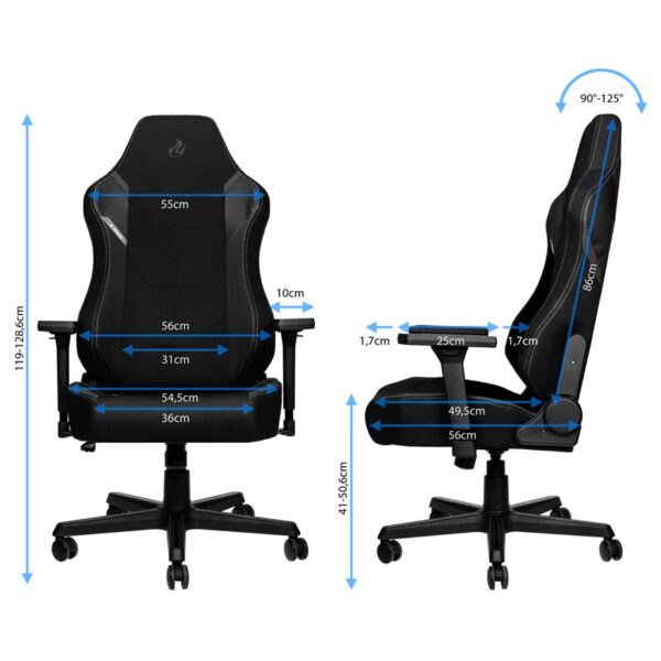 The X1000 series represents an advancement on the previous Nitro Concepts chairs. The new gaming chairs are fundamentally more open in design terms and offer a marked increase in terms of surface contact area, allowing the ergonomics to undergo a dramatic improvement. Even the seat are as well as the backrest have been optimised. With a 56 cm wide backrest and a 54.5 cm wide seat area, sitting on the X1000 gaming chair is sure to be comfortable.