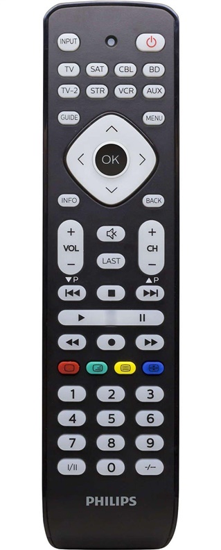 Prekės ženklas- Philips. Modelis- SRP2018/10. Spalva- Juoda. Valdomų įrenginių skaičius- 8. Maksimalus veikimo nuotolis- 10 m. Naudojamos baterijos- AAA. Kodų bazė- CABLE. Privaloma garantija- 24 mėn. Garantija juridiniams asmenims- 12 mėn. Papildoma informacija- Atsparus smūgiams. Suderinama su daugiau kaip 800 prekės ženklų. Technologija URC..