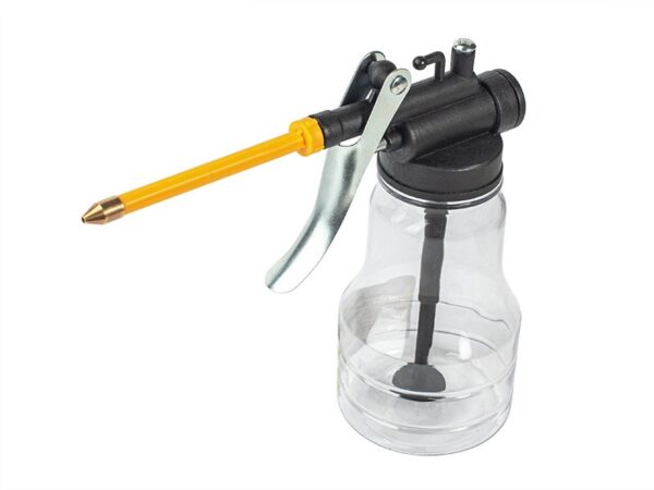It is equipped with a precise distributor and a rigid pipe. The main use of an oil can is to lubricate mechanisms with oil.