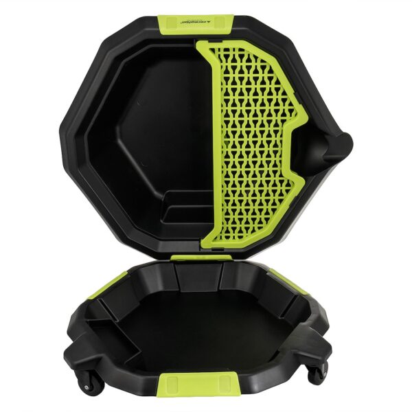 Oil drain pan on wheels, with drainer, 8L
