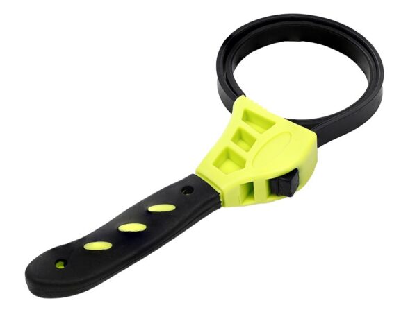 The strap wrench is an innovative tool designed to facilitate the loosening and tightening of objects of all shapes and sizes. The elastic strap adapts perfectly to the surface, ensuring a secure grip. Thanks to its universal design, the strap wrench is irreplaceable when working with items such as oil filters, PVC pipes, pipe fittings, as well as when opening jars or other containers and items that are difficult to unscrew.