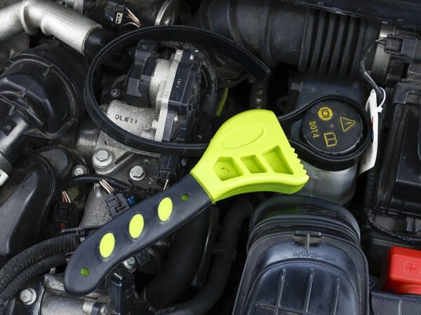 The strap wrench is an innovative tool designed to facilitate the loosening and tightening of objects of all shapes and sizes. The elastic strap adapts perfectly to the surface, ensuring a secure grip. Thanks to its universal design, the strap wrench is irreplaceable when working with items such as oil filters, PVC pipes, pipe fittings, as well as when opening jars or other containers and items that are difficult to unscrew.