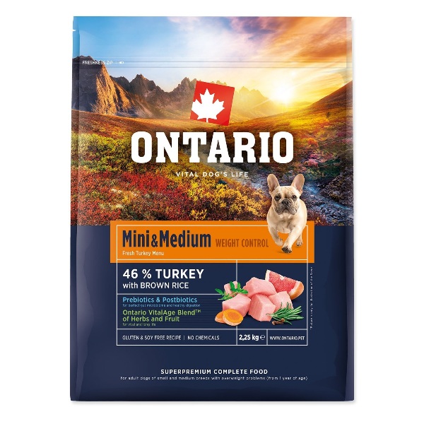 Ontario Mini & Medium Weight Control Turkey & Brown rice 2,25kg