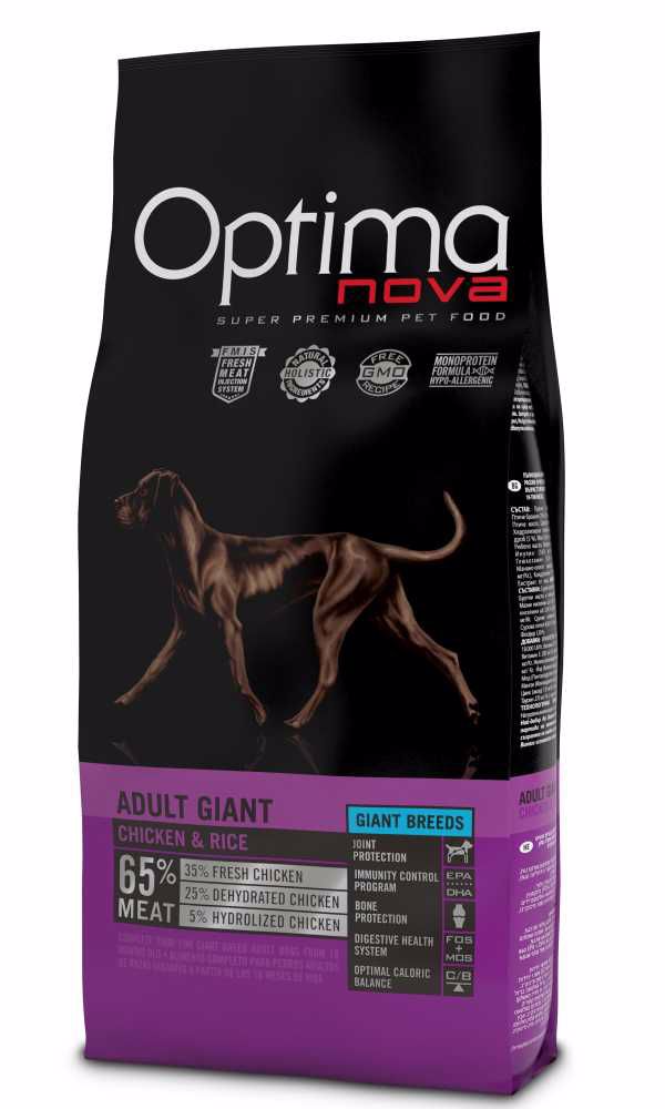 Optima Nova Dog Adult Giant Chicken & Rice sausas pašaras šunims, 12 kg