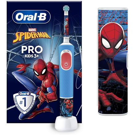 Oral-B | Electric Toothbrush with Travel Case | Vitality PRO Kids Spiderman | Rechargeable | For children | Number of brush heads included 1 | Number of teeth brushing modes 2 | Blue