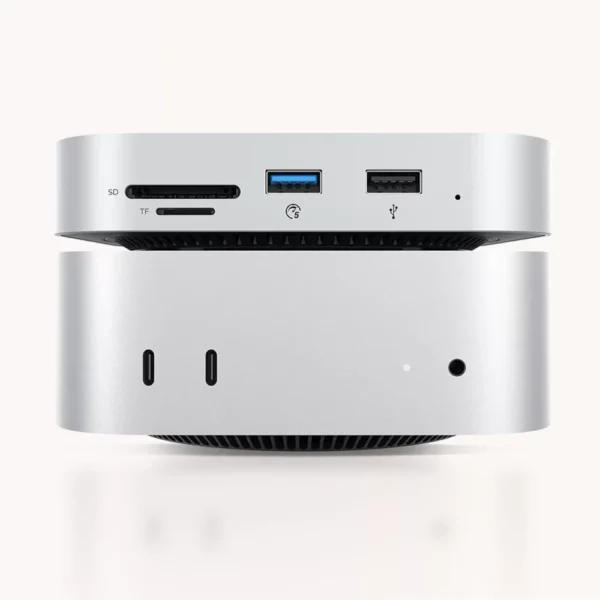 The Orico MiniLink 9-in-1 docking station is a compact expansion center designed for desktop computers and laptops, especially the Mac mini. It combines a USB hub, a high-speed network port, and a hard drive bay in a single enclosure, allowing you to conveniently expand your workstation without taking up additional desk space. The aluminum construction promotes heat dissipation, and the magnetic bottom cover allows for tool-free drive installation.