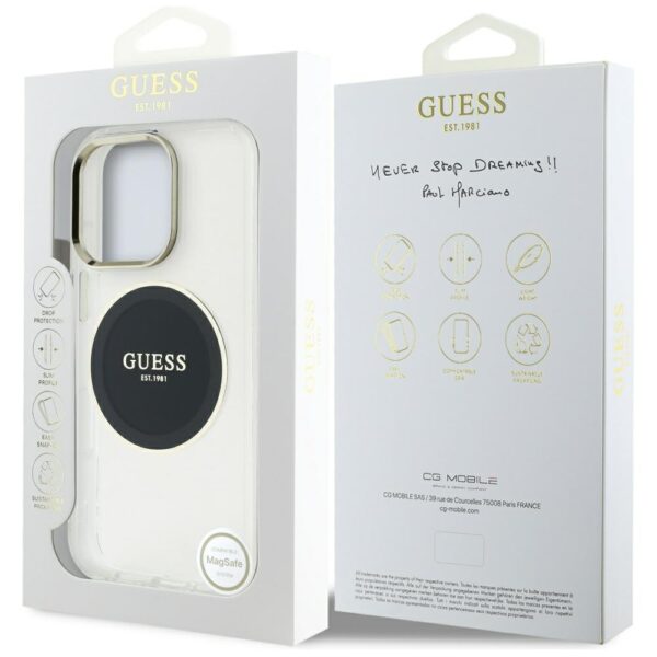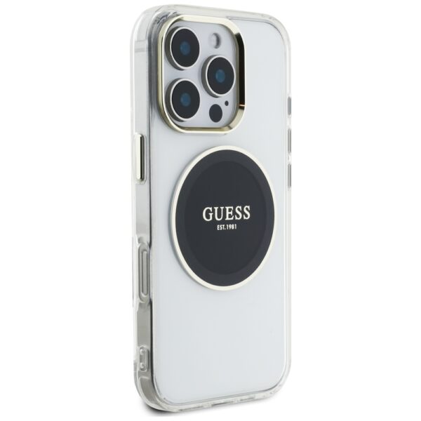 Originalus Dėklas GUESS IML Metal Colored Circle Classic Logo MagSafe skirtas Apple iPhone 16 Pro juodos spalvos