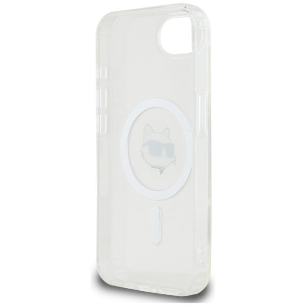 Originalus Dėklas KARL LAGERFELD IML Metal Choupette Head MagSafe skirtas Apple iPhone 16e baltos spalvos