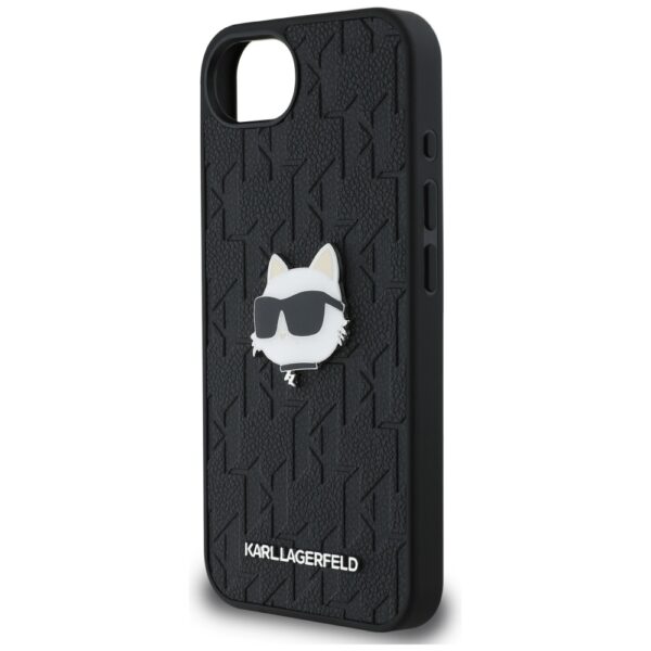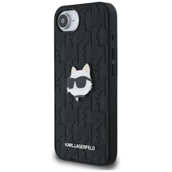 Originalus Dėklas KARL LAGERFELD Monogram Choupette Head Pin skirtas Apple iPhone 16e juodos spalvos