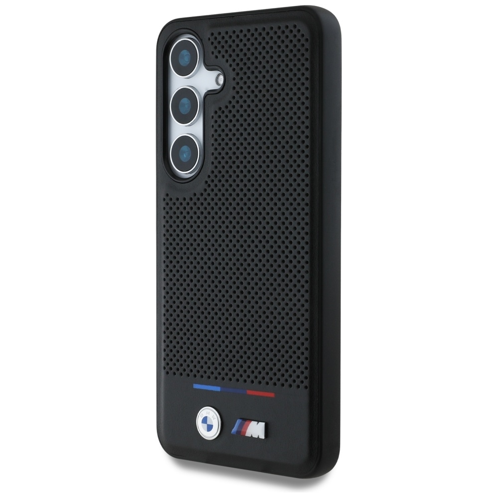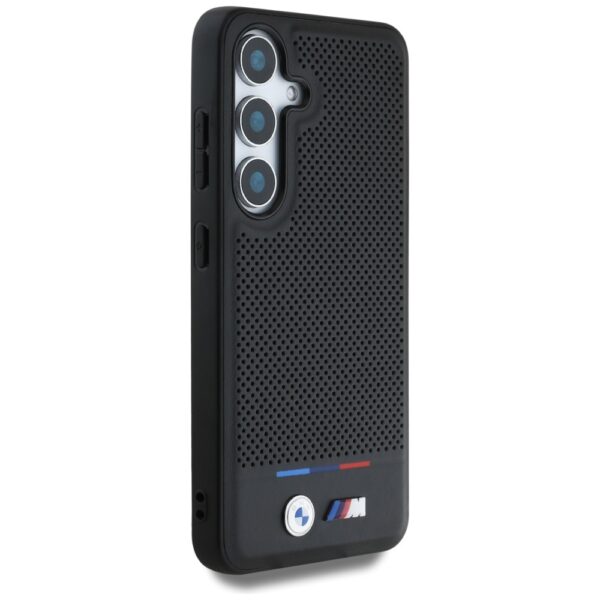 Dėklas BMW Leather Tricolor Stripe MagSafe skirtas Samsung Galaxy S25 Plus juodos spalvos