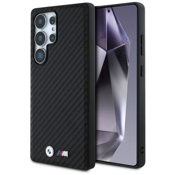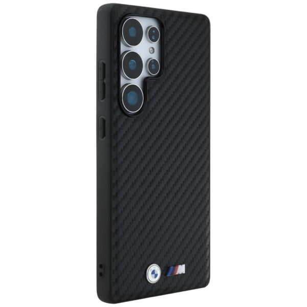 Dėklas BMW Leather Carbon MagSafe skirtas Samsung Galaxy S25 Ultra juodos spalvos