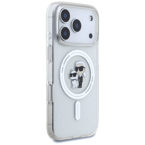 Dėklas KARL LAGERFELD IML Karl Choupette Glitter Magsafe skirtas Apple iPhone 17 Pro skaidrus
