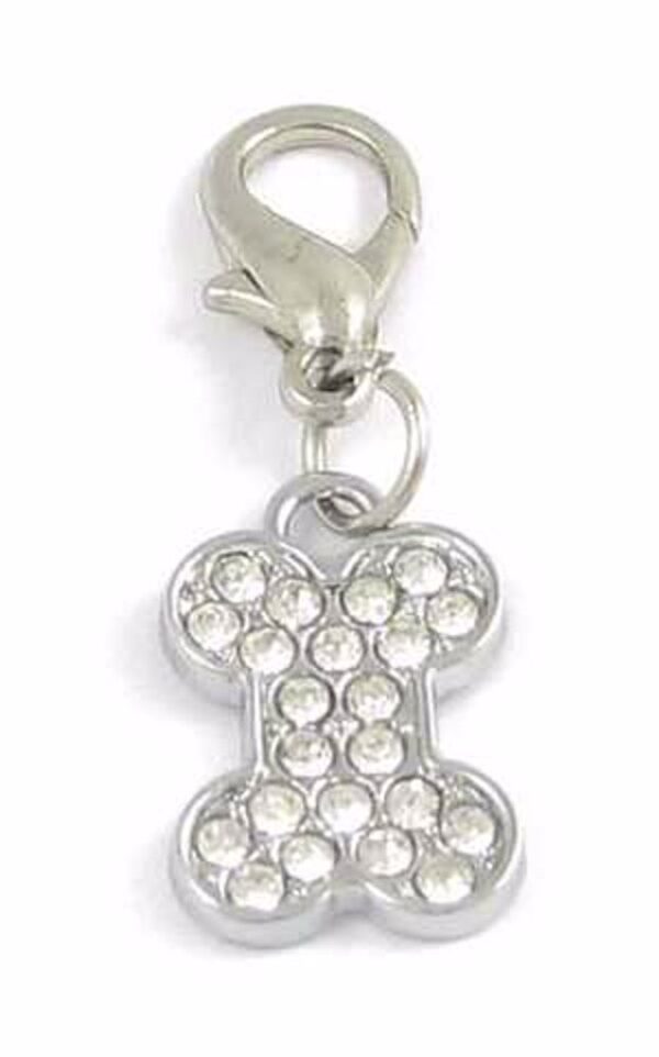 Pakabukas ant apykaklės kaulų formos apkaltas akmenimis.