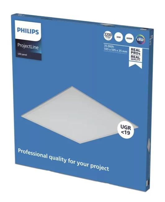 Prekės tipas- Šviestuvai. Įtampa- 220 – 240V. Apsaugos laipsnis (IP)- IP20. Prekės ženklas- Philips. Kolekcija- ProjectLine. Artikulas- 911401865084. Ilgis- 595 mm. Plotis- 595 mm. Aukštis- 36 mm. Maksimali galia- 36 W. Šviestuvo tipas- Įleidžiamas. Montavimo tipas- Įleidžiamas į lubas. Maksimalus lemputės galingumas- 36 W. Lempučių skaičius- 1. Lemputės lizdas- LED. Su lempute(-ėmis) komplekte- Taip. Šviesos srautas- 3200 – 3200lm. Šviestuvo efektyvumas- 88 lm/W. Spalvos temperatūra- 4000 – 4000°K. Gaubto medžiaga- Metalas. Korpuso spalva- Balta. Korpuso medžiaga- Poliesteris. Su šviesos davikliu- Ne. Su judesio davikliu- Ne. Vidutinė veikimo trukmė- 35000 h. Privaloma garantija- 24 mėn. Garantija juridiniams asmenims- 12 mėn. Papildoma informacija- UGR <19.