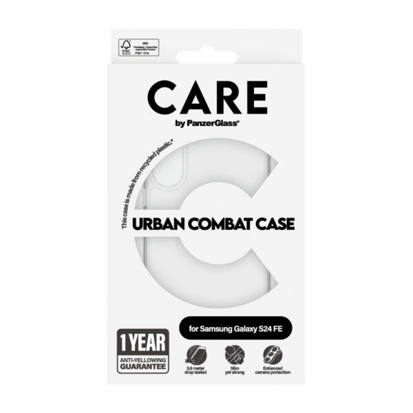 PanzerGlass CARE Urban Combat dėklas, skirtas Samsung Galaxy S24 FE, skaidrus