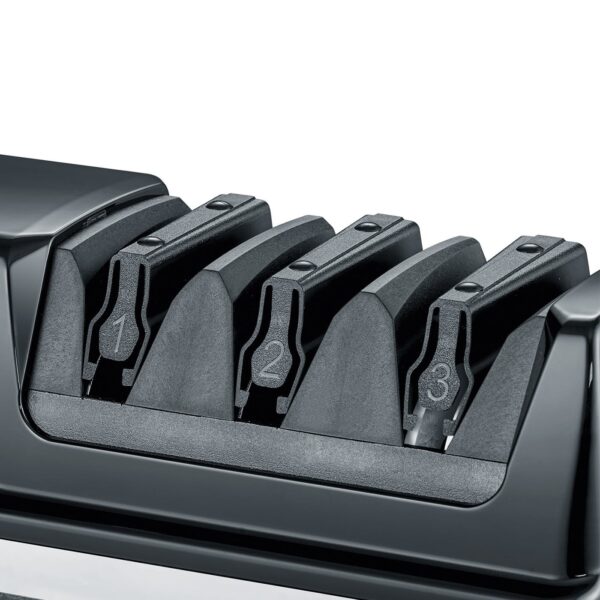 - Ašmenų šlifavimo kampas 15 °, idealus Azijos peiliams; net įprasti Europos peiliai, kurių aštrinimo kampas 20 °, 1 etape gali būti supjaustyti iki 15 ° kampo, kad 20 ° kampas būtų dar didesnis ir patvaresnis.