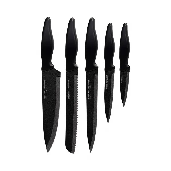 - rinkinį sudaro blokas ir 5 plieniniai peiliai