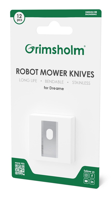 Žoliapjovės priedų tipas- Peiliukai robotui. Prekės ženklas- Grimsholm. Artikulas- DREAME. Medžiaga- Plienas. Privaloma garantija- 24 mėn. Priedas tinkamas- <strong>Dreame </strong>vejos pjovimo robotams..