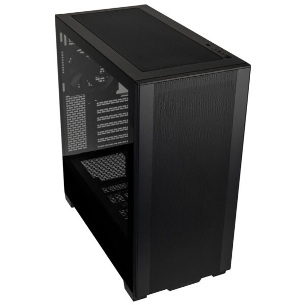 Mid-tower case, with tempered glass side panel, excellent airflow thanks to fine mesh front, space for radiators up to 360 mm, pre-installed 120 mm fan, support for motherboards with rear connectors