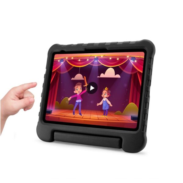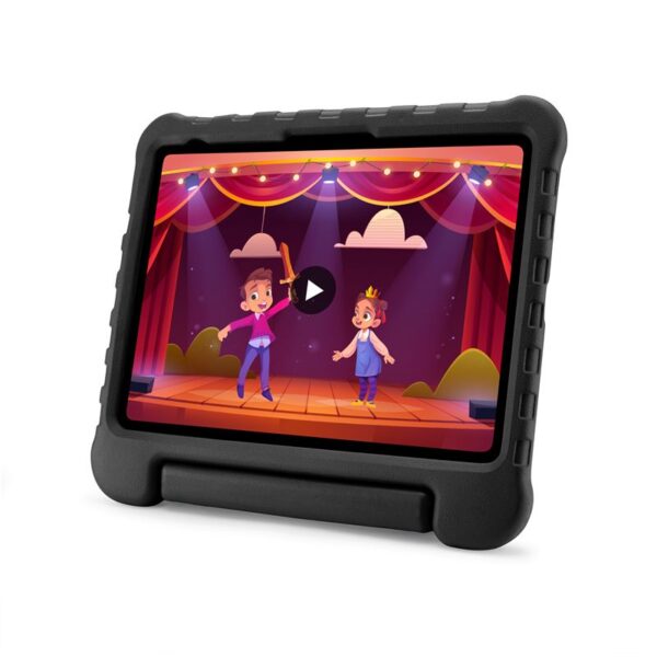 - The easy to hold carry-handle allows small hands to securely grip when on the go and doubles as a sturdy stand for watching movies or playing games.
