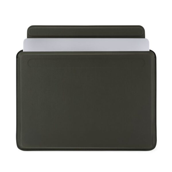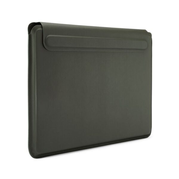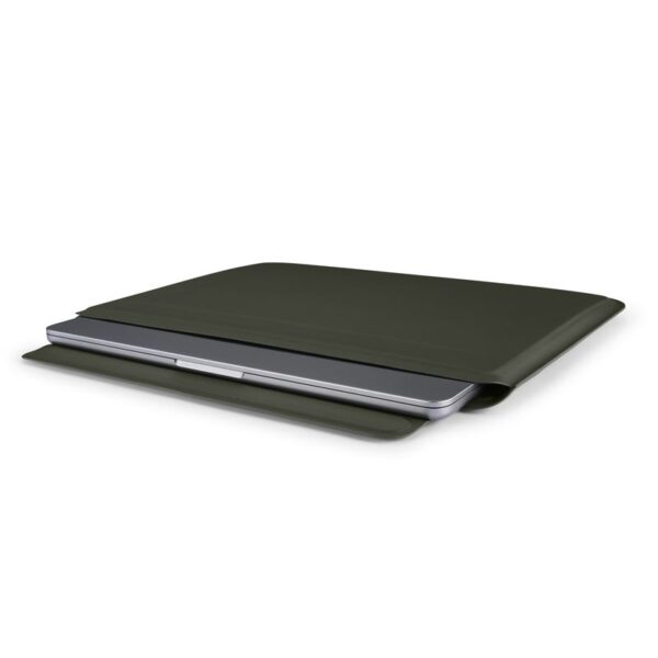 - Crafted from 100% premium vegan leather with a soft, tactile feel and a luxurious microfibre lining, this sleeve combines elegance with durability. The strong magnetic closure ensures your MacBook stays securely in place, while the scratch and splash-resistant exterior offers all-around protection.