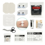 Prekės ženklas- -. Komplektacijos sudėtis- Palaikomasis trikampio formos tvarstis, Pirmosios pagalbos žirklės, Speciali antklodė nukentėjusiajam paguldyti ir (ar) apkloti, Sterilus žaizdų tvarstis, Vienkartinės pirštinės, Sterilūs pleistrai, Lipnus pleistras rulonėlyje, Sterilus spaudžiamas tvarstis, Nesterilus tvarstis, Pirmosios pagalbos gaivinimo kaukės dirbtiniam kvėpavimui atlikti, Vienkartinis šalčio maišelis, Turniketas, skirtas stipriam (masyviam) kraujavimui galūnėse (rankose, kojose) stabdyti, Pirmosios pagalbos teikimo atmintinė su turniketo naudojimo instrukcija. Pakuotės tipas- Medžiaginė. Atitinka DIN 13164 standartą- Taip.