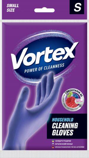 Prekės ženklas- Vortex. Medžiaga- Lateksas. Spalva- Violetinė. Dydis- S. Pirštinių tipas- Guminės. Su užsegimu- Ne. Su pašiltinimu- Ne. Su PVC taškeliais- Ne. Papildoma informacija- Vidinė pusė padengta medvilne su Provitaminu B5, kas apsaugo rankų odą ir ją puolėja; švelnaus miško uogų aromato.. Vienetai pakuotėje- 2.
