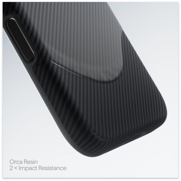 - Orca Resin: PITAKA’s Orca resin, fused with aramid fiber, boosts strength by 200% and doubles impact resistance. Paired with TPU’s elasticity, it delivers dual-layer defense—hard protection and soft cushioning—surpassing traditional thermosetting resins.