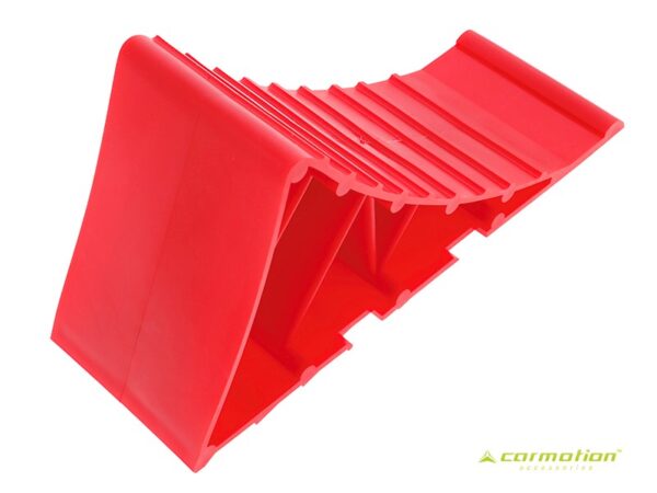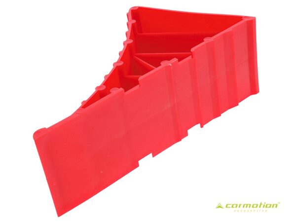 Wheel chock made of durable plastic. Locks the wheel to prevent the vehicle from sliding. Dimensions: