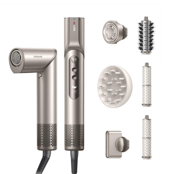 Prekės ženklas- Dreame. Modelis- AZD20A. Ilgis- 45 mm. Plotis- 53 mm. Aukštis- 295 mm. Svoris- 0.360 kg. Spalva- Aukso. Galia- 1400 W. Greičių skaičius- 3. Įtampa- 220 – 240V. Apsauga nuo perkaitimo- Taip. Jonizavimo funkcija- Taip. Sulankstoma rankena- Taip. Antgalių skaičius- 5. Privaloma garantija- 24 mėn. Su dėklu- Ne. Laido ilgis- 2.8 m. Pakabinimo kilpa- Ne. Komplektacija- Antgaliai. Temperatūros nustatymai- 3. Korpuso medžiaga- Plastikas. Šaltas oras- Taip.