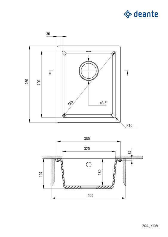 Prekės ženklas- Deante. Modelis- ZQA_T10B. Ilgis- 38 cm. Plotis- 46 cm. Gylis- 18 cm. Forma- Stačiakampis. Tinkamas patalpai- Virtuvė. Spalva- Juoda. Medžiaga- Granitas. Skylė maišytuvui- Ne. Perbėgimo skylė- Taip. Tinka spintelėms kurių plotis- 45 – 45cm. Dubenų skaičius- 1. Montavimo tipas- Įmontuojama. Ventilio tipas- Užkemšamas. Su nusausinimo dalimi- Ne. Su maišytuvu- Ne. Garantija- 24 mėn. Papildoma informacija- Vietą spintelėje taupantis sifonas..