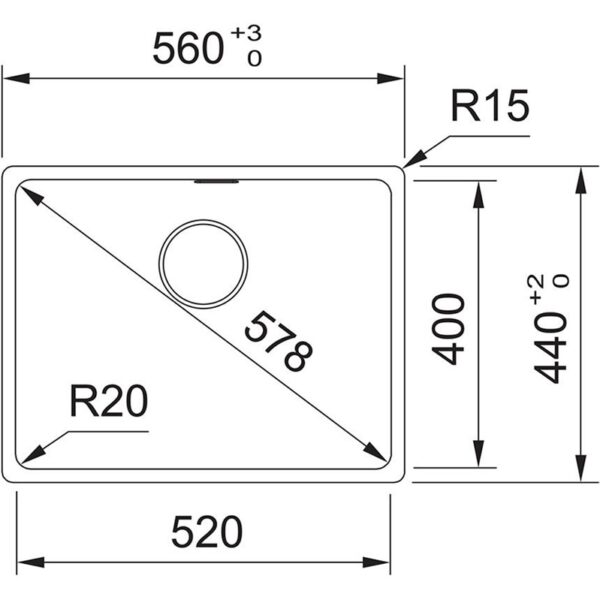 Prekės ženklas- Franke. Modelis- 125.0683.101. Ilgis- 56 cm. Plotis- 44 cm. Gylis- 20 cm. Forma- Stačiakampis. Tinkamas patalpai- Virtuvė. Spalva- Juoda. Medžiaga- Granitas. Skylė maišytuvui- Ne. Perbėgimo skylė- Taip. Tinka spintelėms kurių plotis- 80 – 80cm. Dubenų skaičius- 1. Montavimo tipas- Įmontuojama. Ventilio tipas- Ekscentrinis. Su nusausinimo dalimi- Ne. Su maišytuvu- Ne. Galima prijungti atliekų smulkintuvą- Taip. Garantija- 24 mėn. Papildoma informacija- Lengvai valomos, neporėtas paviršius užtikrina maksimalią kasdienę higieną. Integruotas perpylimas su dangteliu..
