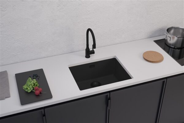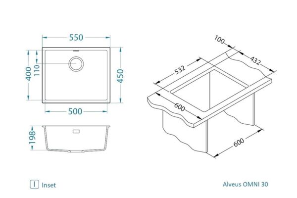 Prekės ženklas- Alveus. Ilgis- 55 cm. Plotis- 45 cm. Gylis- 19.8 cm. Forma- Stačiakampė. Tinkamas patalpai- Virtuvė. Spalva- Juoda. Skylė maišytuvui- Ne. Perbėgimo skylė- Taip. Montavimo tipas- Ant stalviršio, Įmontuojama. Komplekte- Sifonas. Garantija- 24 mėn.