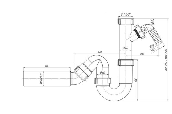 Plautuvės sifonas 11/2×40 su atšaka. ø50