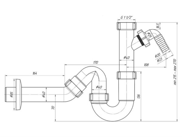 Plautuvės sifonas 11/2×40. vamzdelis ø40