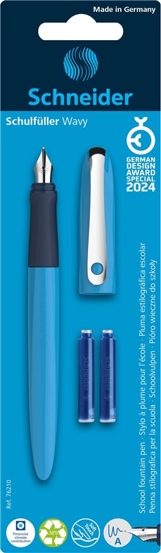 Prekės ženklas- Schneider. Modelis- Wavy. Artikulas- 76210. Spalva- Mėlyna. Medžiaga- Plastikas. Rašalo spalva- Mėlyna. Su kapsulėmis komplekte- Taip.