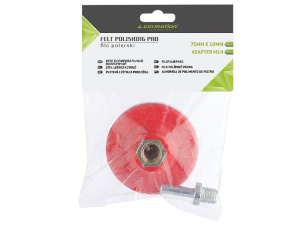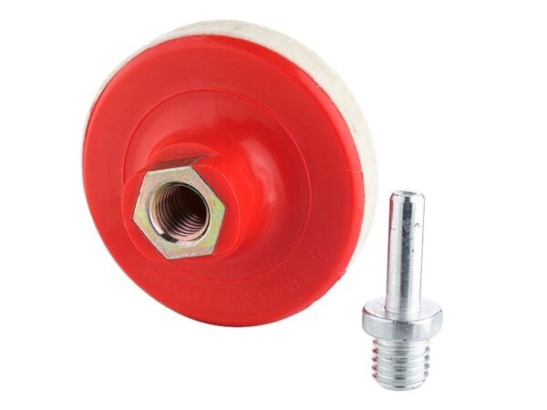 Felt / polishing disc with M14 adapter and screwed pin. Perfect for polishing flat surfaces with soft polishing pastes. Due to the high density, the felt in combination with cerium oxide is also suitable for polishing windscreen and car windscreen and headlights. Glass polishing set – cerium oxide with a polishing disc can be found on our website under the product number 86684.