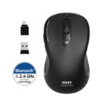 The mouse supports two wireless connectivity methods – Bluetooth® and a 2.4GHz USB receiver, allowing simultaneous pairing with up to three devices.