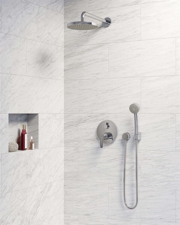 Prekės ženklas- Oras. Modelis- BlueBox 2091. Spalva- Chromo. Medžiaga- Žalvaris. Su vonios maišytuvu- Ne. Su dušo galvute- Taip. Su dušo žarna- Taip. Žarnos ilgis- 1.5 m. Privaloma garantija- 24 mėn. Papildoma informacija- Sienoje montuojamos dušo sistemos rinkinys, komplektuojamas su universaliu Oras Bluebox potinkiniu korpusu, kuris tinka įvairioms vonios kambario sistemoms sukurti bei pasižymi išskirtinėmis funkcijomis ir montavimo savybėmis ir įprastai svirtimi valdomu ø170 mm dekoratyviniu dangteliu. Rinkinį taip pat sudaro kruopščiai parinkti aksesuarai: plati ø200 mm lietaus dušo galva, bei 350 mm ilgio lietaus dušo alkūnė, sieninė jungtis, ø70 mm antikalkinio rankinio dušo komplektas su 1,5 m ilgio dušo žarna ir rankinio dušo laikikliu.Dušo galvos vandens pralaidumas 15-9 l/min, dušo galvutės 6,6 l/min. Taip pat yra įdiegtos vandens temperatūros ir maksimalaus srauto ribojimo funkcijos..