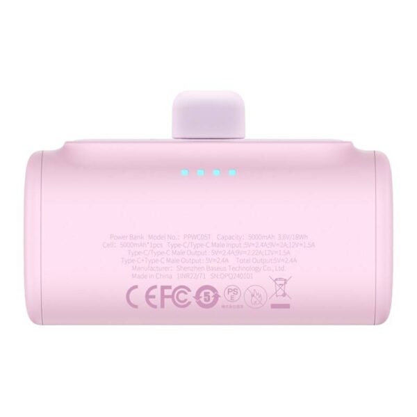Powerbank Baseus Compact USB-C 5000mAh, 20W rožinės spalvos