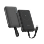 Powerbank ma zintegrowane przewody USB-C oraz Lightning, które umożliwiają ładowanie urządzeń bez dodatkowych akcesoriów.