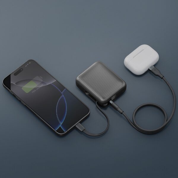 Wbudowany kabel USB-C umożliwia nie tylko ładowanie urządzeń, ale także samego powerbanka – to wygodne i efektywne rozwiązanie.